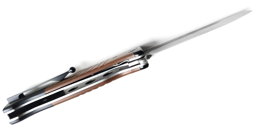 Масса ножа сильно легче предшественников. Замок ножа - Liner Lock отлично дружит и с правшой и с левшой. А клипса сделана непереставляемой именно потому, что на автоматах этот переводчик всегда справа )