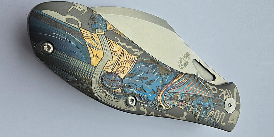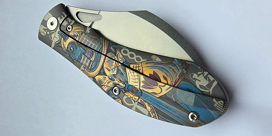 ЛИМИТИРОВАНАЯ серия 2026 года. Египетский стиль, цветной лазер, идеальная механика и заточка. В принципе - Царап это гордость Бруталики - первый фолдер выпущенный под нашей маркой. Это нож - сложенный Царап. Это его самая прогрессивная версия - с титановой рукоятью, фреймлоком и клинком из М390. С одной стороны цветным лазером нанесен Анубис,с другой Бастет. Царапы с фиксированным клинком пользуются огромной популярностью и именно этот нож был выбран для того чтобы выпустить его складной вариант первым. Это очень необычный складень - и варнклифф и округлые формы в сложенном варианте и потайная клипса - все это не похоже на 95% складней на рынке. Он интересен. Главное что это компактный и очень эргономичный нож с отличным строем клинка и шикарной сталью. Нож чрезвычайно удобен и точно выбивается из тысяч других фолдеров. А если еще обратить внимание на цену - вообще становится уникальным. Поставляется в пластиковом противоударном кейсе.