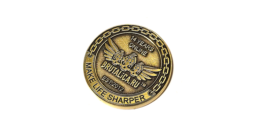 Эта монета уже седьмая в коллекции бруталкойнов - признак клубности, предмет коллекционирования и отличный околоножевой аксессуар. Количество как всегда жестко ограничено и никаких перевыпусков никогда не будет. Сувенирная монета в стиле "сложный выбор" - прекрасно понятно где "орел", а где "решка". Теперь вопрос "наточить старые или купить новый" можно решить орлянкой.