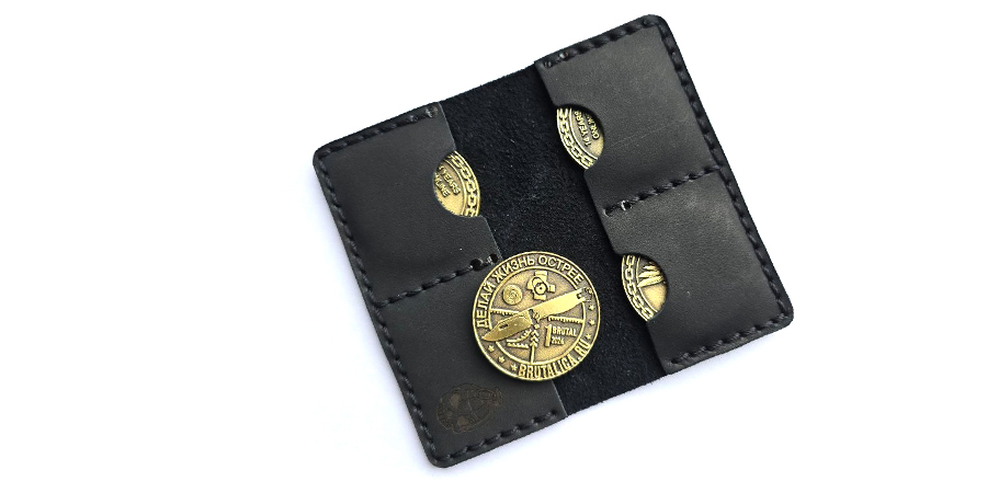Специально сшитые вручную кошельки на 4 монеты Brutalica. Приятно смотрится и отлично бережет ваши монеты. На 2026 год выпущено уже 7 монет - возможно имеет смысл покупать сразу парочку.